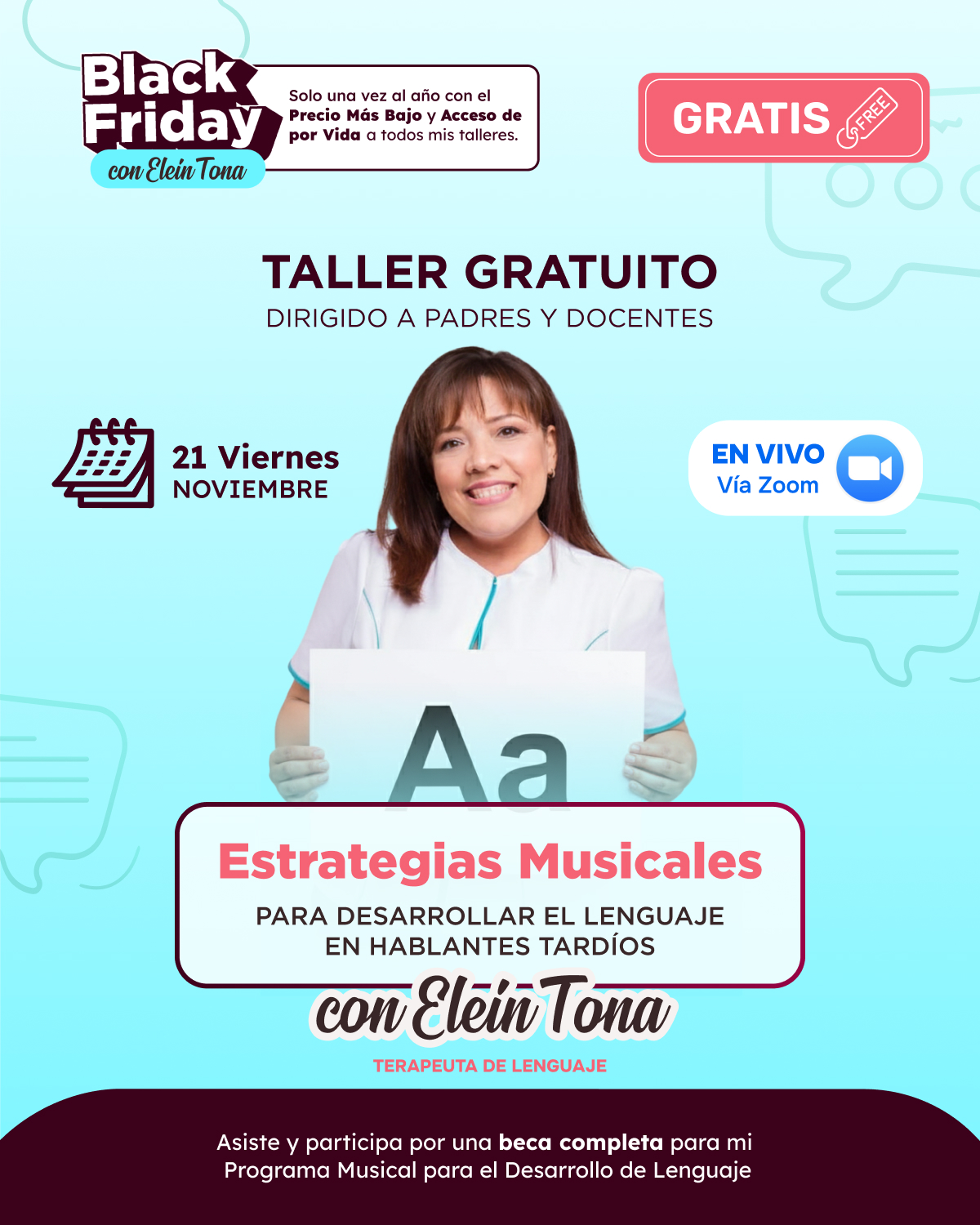 Únete a mi grupo Privado de Whatsapp para recibir el link de mi Taller Gratuito donde además, tendremos un reto en el que identificarás el nivel de lenguaje de tu niño/a y podrás participar por 1 beca completa para mi Programa Musical para el Desarrollo de Lenguaje y además presentaré una gran oferta de Black Friday, todos mis programas al precio más bajo por única vez en el año.